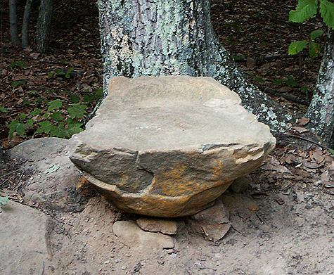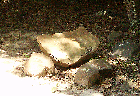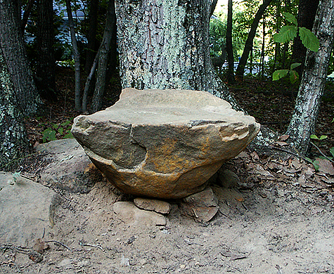 I struggle with moving the small boulder for several hours, I would guess at least five and maybe longer. It was hot and humid today and I became soaking wet from my own sweat from the exertion. Mum use to scold me for doing such things; she was afraid that I was going to hurt myself. I think it may be time that I started to listen to what Mum told me. Part of the problem was that when I got it close to where I wanted it, a tree root at the surface was in the way. I could not find the proper leverage to make the boulder slide instead of rocking. Again, I had to analyse the motion of the small boulder and decide on how to redirect the force; and you thought you would never need to know the things you were being taught in physic class. I wanted to place the small boulder against the trunk of a tree so the tree could act as a back rest and it was a difficult task to get it in the correct position.